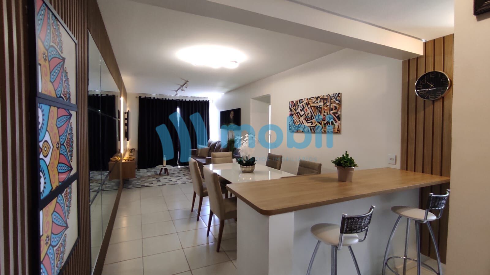 ✔ Sala espaçosa e elegante, com espelho e ripado com LED;