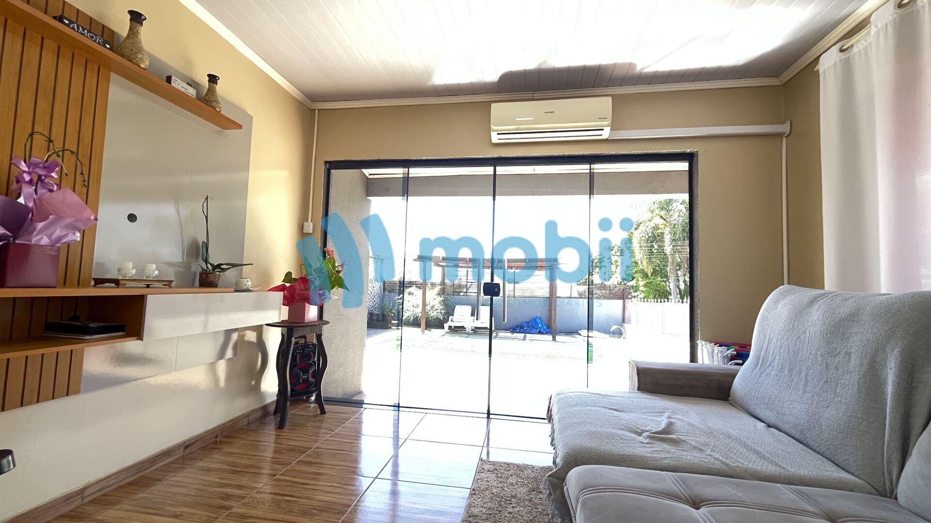 🛋 Sala de estar iluminada, com porta de vidro que valoriza cada detalhe